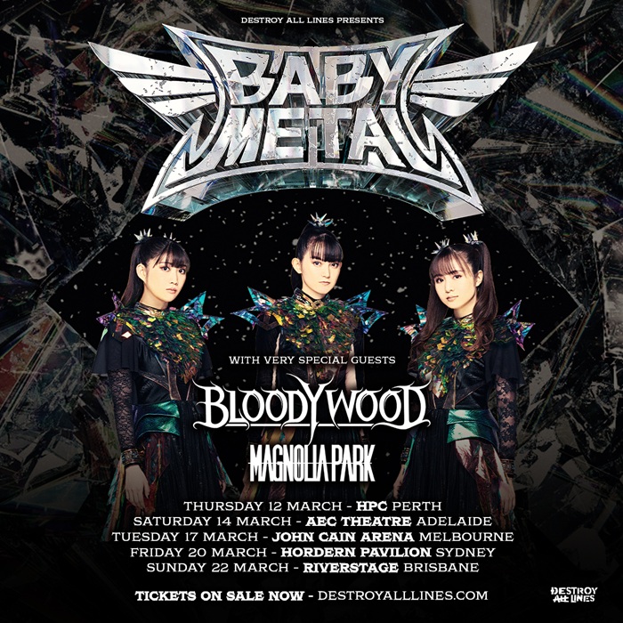 ON SALE NOW! A dazzling global force to be reckoned with, in 2026 Metal sensations BABYMETAL are set to tour Australian arenas next March joined by Indian metal behemoths BLOODYWOOD.