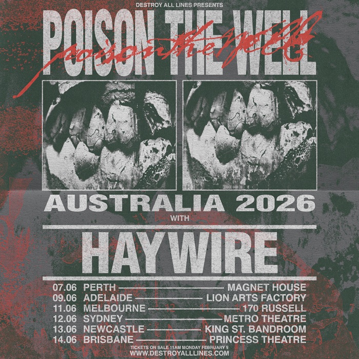 ON SALE NOW ! One of the most influential acts in modern metal and hardcore, in 2026 Florida heavyweights POISON THE WELL will at long last again be at arm's length for Aussie fans, heading down under for their Australian headline tour in June, joined by special guests HAYWIRE (USa)