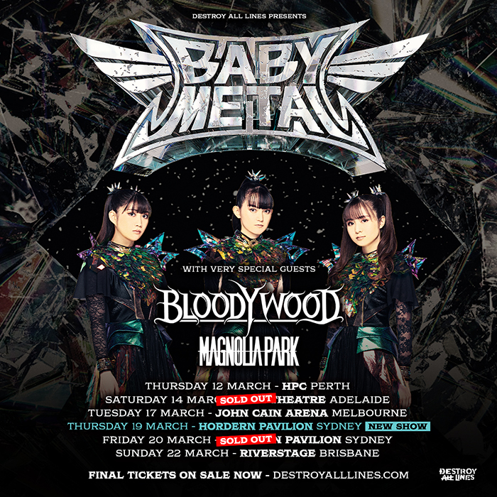 2ND SYDNEY SHOW! A dazzling global force to be reckoned with, in 2026 Metal sensations BABYMETAL are set to tour Australian arenas THIS March joined by Indian metal behemoths BLOODYWOOD.