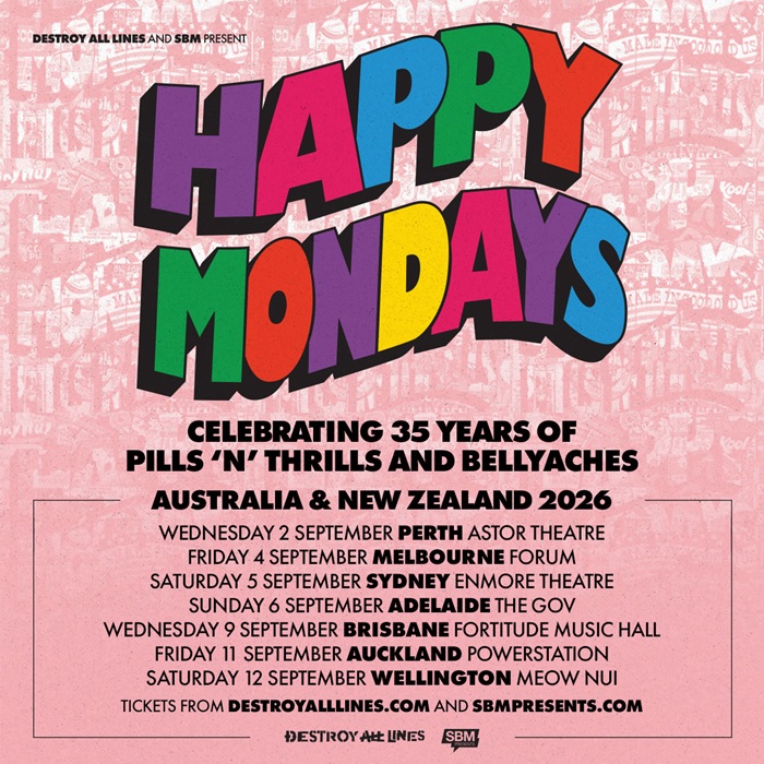ON SALE NOW! Pioneers of the iconic Madchester sound, the Happy Mondays are heading back to Australia and New Zealand to celebrate the 35th anniversary of their seminal album, Pills 'n' Thrills and Bellyach