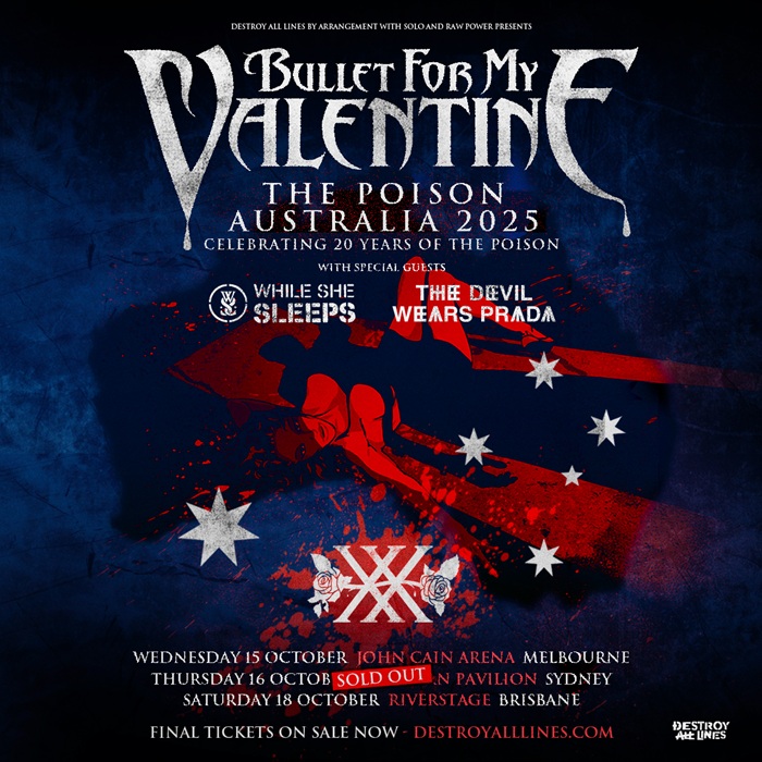 ON SALE NOW: And selling fast! Bullet for My Valentine return down under for their biggest ever Australian headline tour, celebrating the 20th anniversary of their debut album The Poison