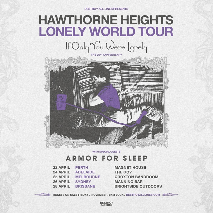 ON SALE NOW! Beloved Ohio emo veterans Hawthorne Heights will return to Australia in April 2026 to celebrate 20 years of their seminal album 'If Only You Were Lonely' with New Jersey post-hardcore legends Armor For Sleep