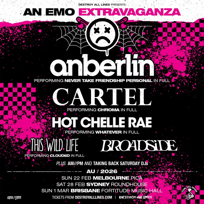 ON SALE NOW! Time to dig up the old studded belt and dust off the eyeliner - Destroy All Lines is proud to announce An Emo Extravaganza, landing in Australia in February 2026