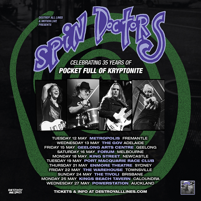 JUST ANNOUNCED! Legendary alt-rockers Spin Doctors are heading to Australia and New Zealand for a massive 11-date run celebrating the 35th anniversary of their iconic 1991 debut album, Pocket Full of Kryptonite.