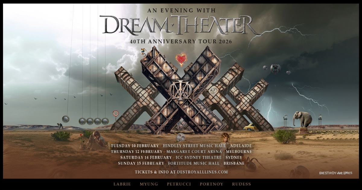 With the worldwide excitement around the recently completed European tour, GRAMMY®-winning, progressive music titans Dream Theater are announcing their 40th Anniversary Tour 2026 leg for Australia. The tour will be An Evening With Dream Theater and will be the first tour of Australia since drummer Mike Portnoy’s return to the lineup joining vocalist James LaBrie, bassist John Myung, guitarist John Petrucci, and keyboardist Jordan Rudess.