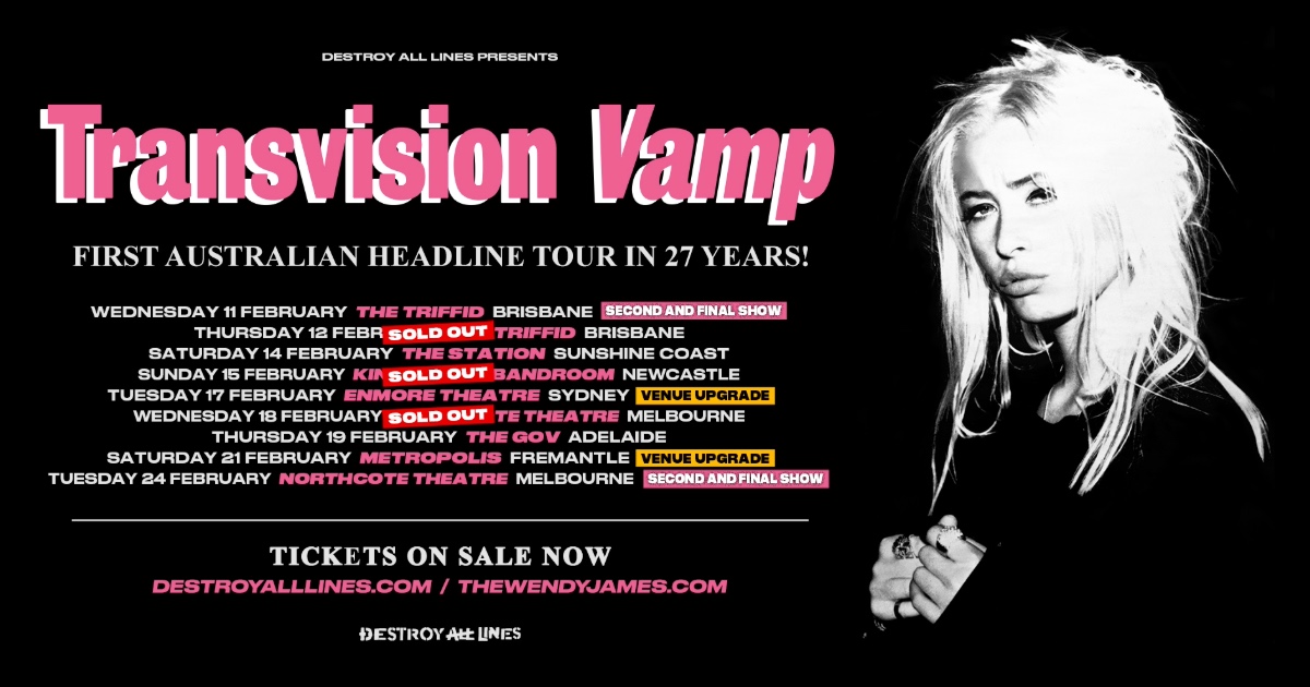 Joining Brisbane & Melbourne, Newcastle is the latest stop on Transvision Vamp's 2026 Australian tour to officially be named as SOLD OUT!