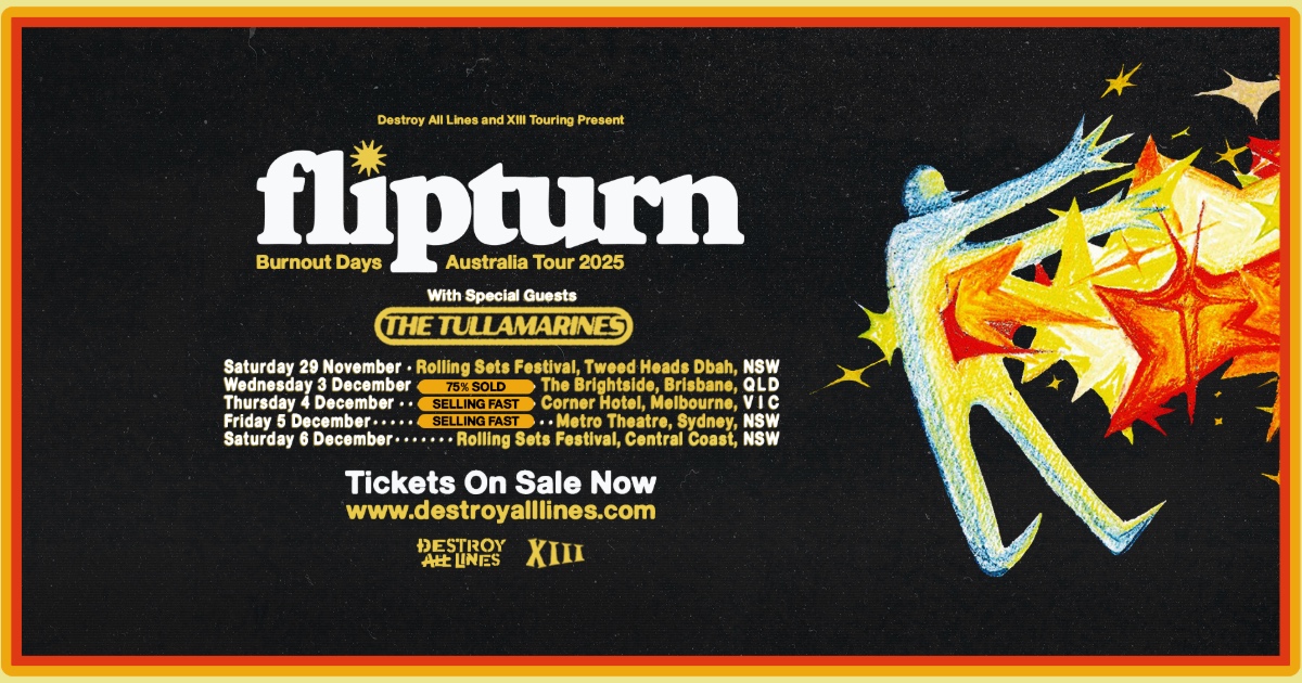 The sunshine-soaked sounds of flipturn are making their way across the East Coast, for the 'Burnout Days' Australian Tour, and theyβll now be joined by none other than Adelaide indie pop stars The Tullamarines.